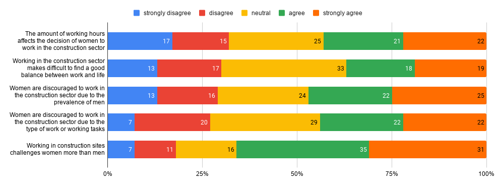 During the last months, the Icaro partners UniBO (University of Bologna) and ACE (Architects’ Council of Europe) conducted a survey aiming to track the main barriers for women and youngsters who would like to approach a career path in the construction sector. The survey has been concluded with 100 participants, all considered valid and including also non-professionals in the sector.